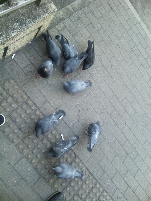 一番悪いのは食いカス落とすIさんだが…本当えさに釣られて争う鳩の姿…